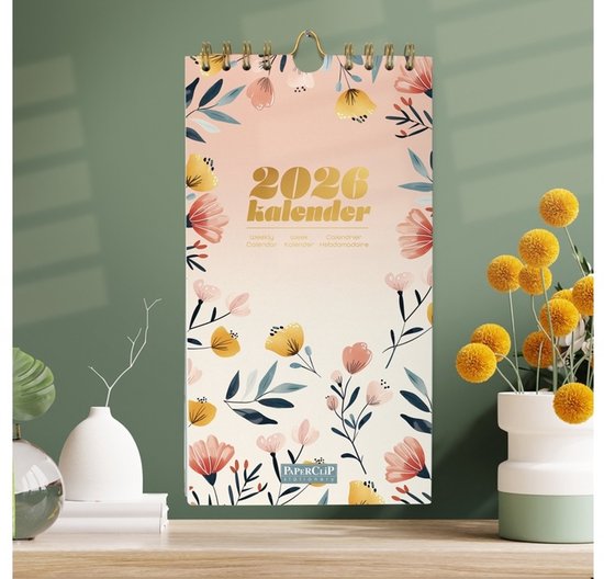 Week kalender - 2026 - Bloemen - Zalm roze